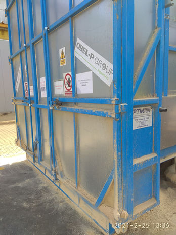 This buffer is used in the process of rapid unloading of sawdust from semi-trailers with a moving floor into the buffer. Further the sawdust is dosed into a silo installed on the production line in the pellet production process.