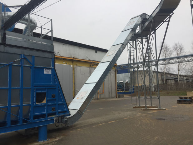 Another example of the application of PTM's moving floor in the recycling industry is an unloading and dozing buffer for transporting sawdust on a pellet line at one of the large wood-furniture industry plants in the West Pomeranian province.